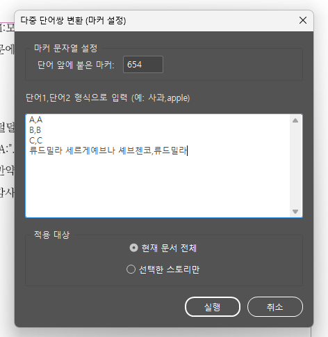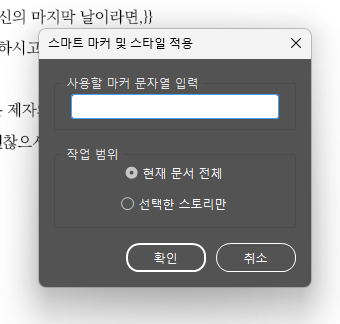 상단의 빈칸에는 앞서 입력한 마커 문자열을 입력합니다.