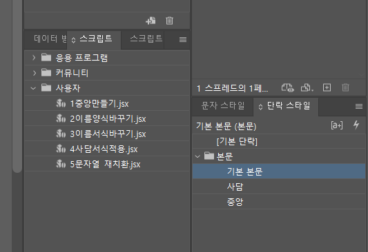- 인디자인 상단 메뉴에서 [창(Window)] > [유틸리티(Utilities)] > [스크립트(Scripts)] 패널을 활성화